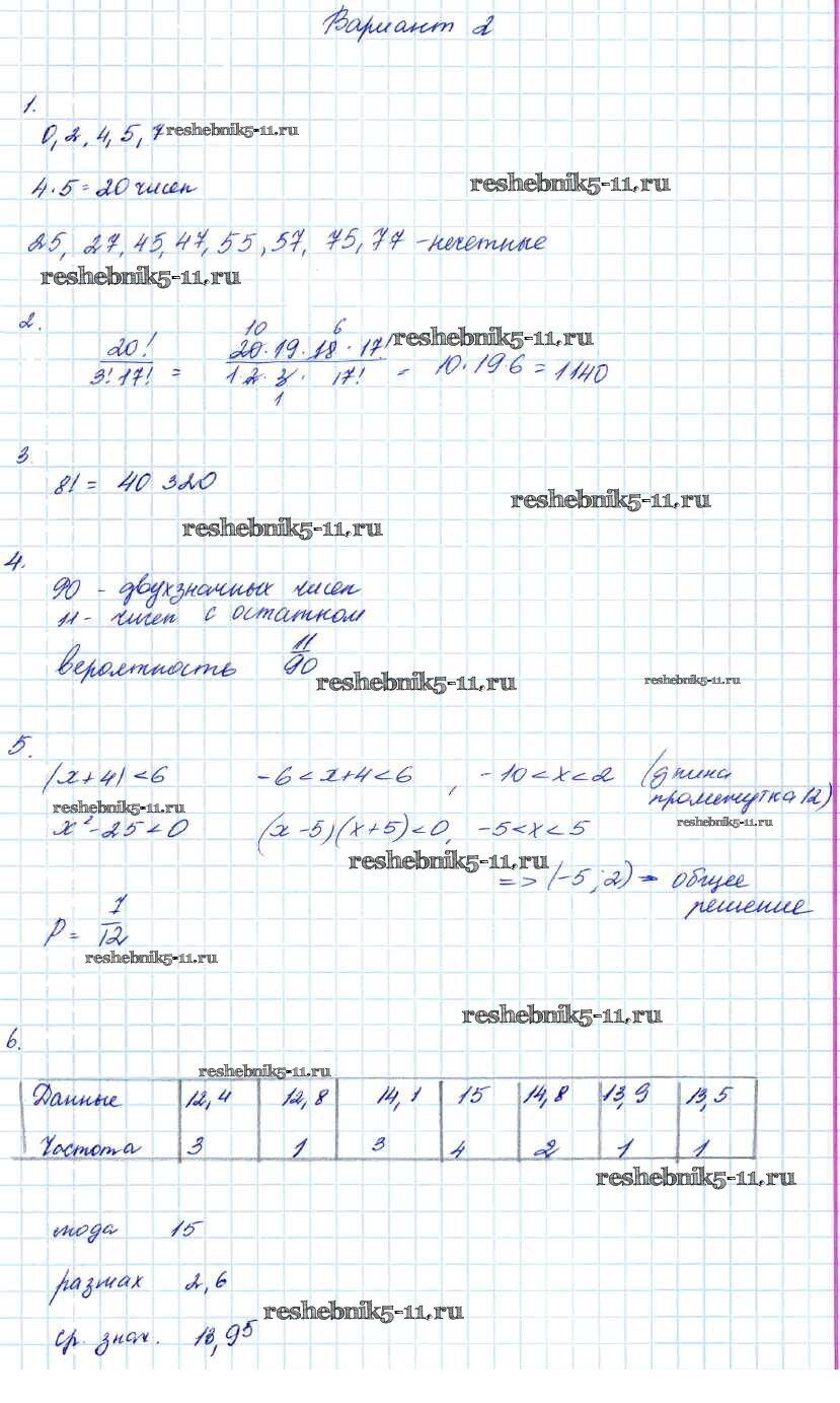 Готовая домашняя работа с ответами по Алгебре за 7, 8, 9 класс Мордкович Контрольные работы Углубленный уровень Мнемозина 2016 ФГОС - КР-8. Варианты 2