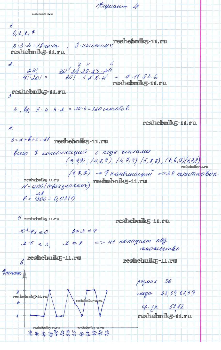 Готовая домашняя работа с ответами по Алгебре за 7, 8, 9 класс Мордкович Контрольные работы Углубленный уровень Мнемозина 2016 ФГОС - КР-8. Варианты 4