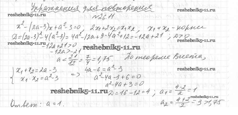 Готовая домашняя работа с ответами по Алгебре за 9 класс Мерзляк, Поляков Учебник Алгоритм успеха Углубленный уровень Вентана-граф 2020 ФГОС - §26 26.11
