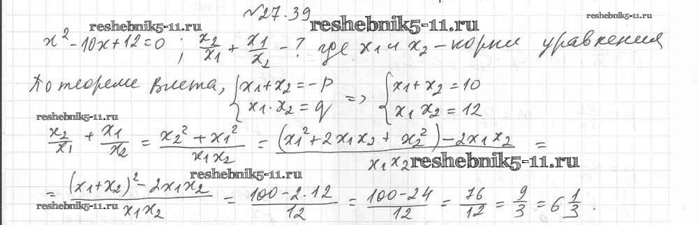 Готовая домашняя работа с ответами по Алгебре за 9 класс Мерзляк, Поляков Учебник Алгоритм успеха Углубленный уровень Вентана-граф 2020 ФГОС - §27 27.39