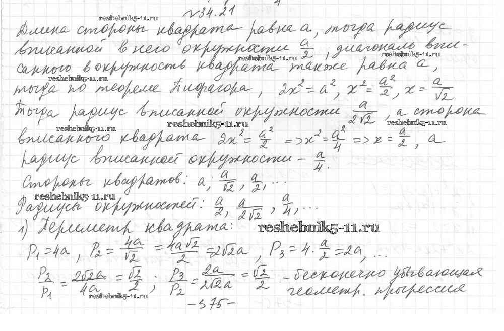 Готовая домашняя работа с ответами по Алгебре за 9 класс Мерзляк, Поляков Учебник Алгоритм успеха Углубленный уровень Вентана-граф 2020 ФГОС - §34 34.21