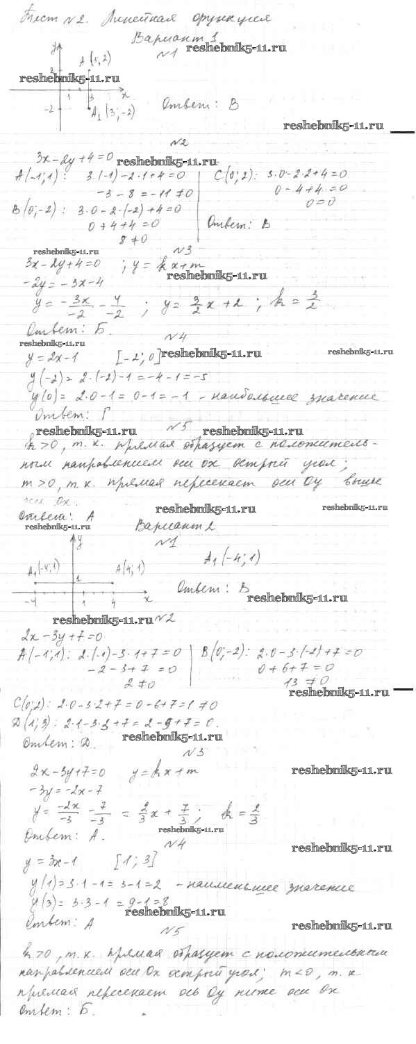Готовая домашняя работа с ответами по Алгебре за 7, 8, 9 класс Мордкович, Тульчинкая Тесты Базовый уровень Мнемозина 2013 ФГОС - 7 класс Тест 2