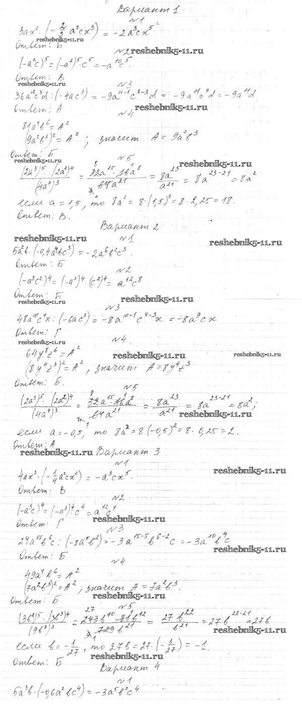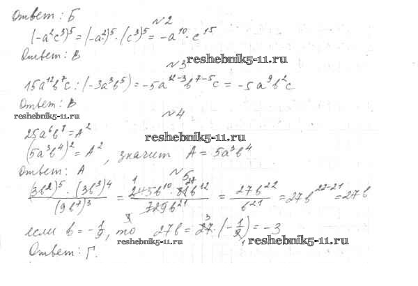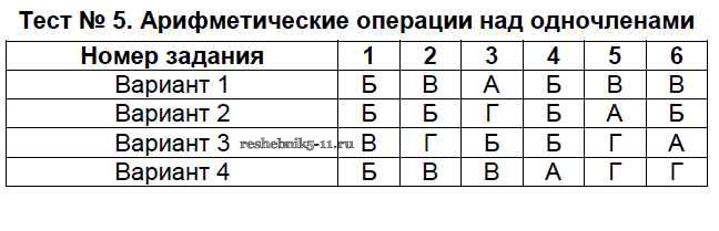 Готовая домашняя работа с ответами по Алгебре за 7, 8, 9 класс Мордкович, Тульчинкая Тесты Базовый уровень Мнемозина 2013 ФГОС - 7 класс Тест 5