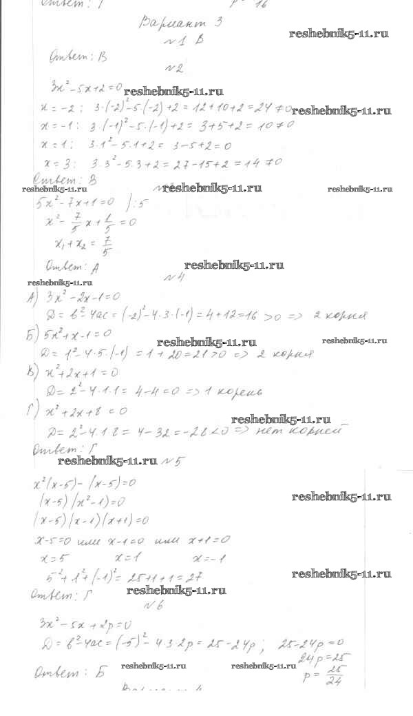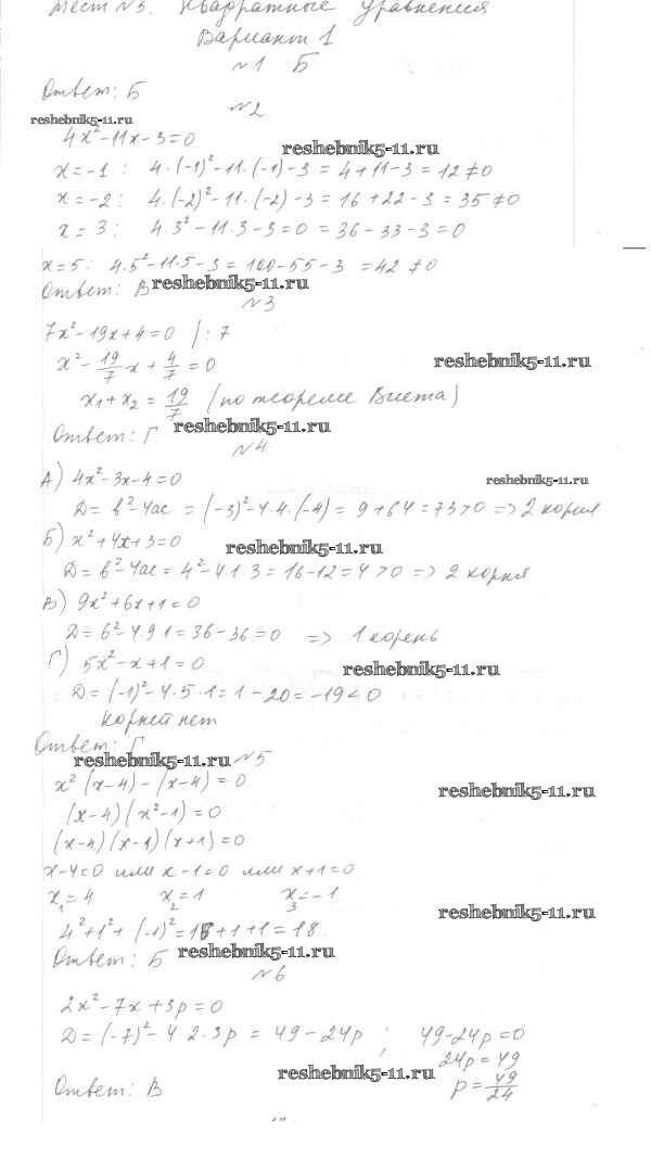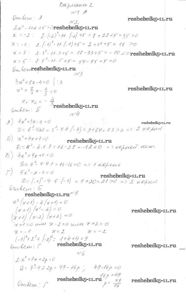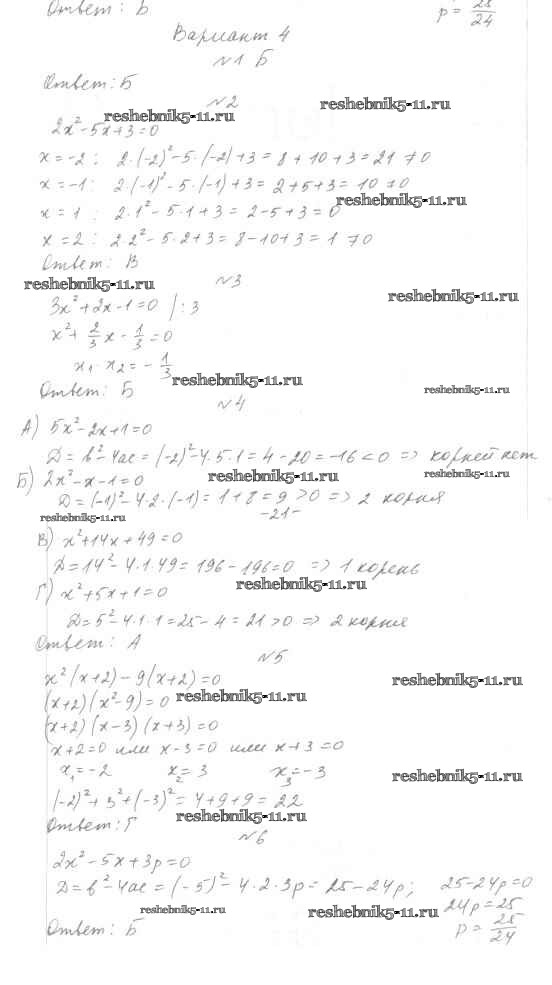 Готовая домашняя работа с ответами по Алгебре за 7, 8, 9 класс Мордкович, Тульчинкая Тесты Базовый уровень Мнемозина 2013 ФГОС - 8 класс Тест 5