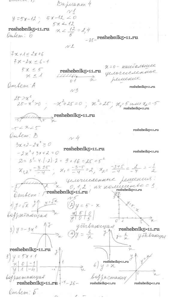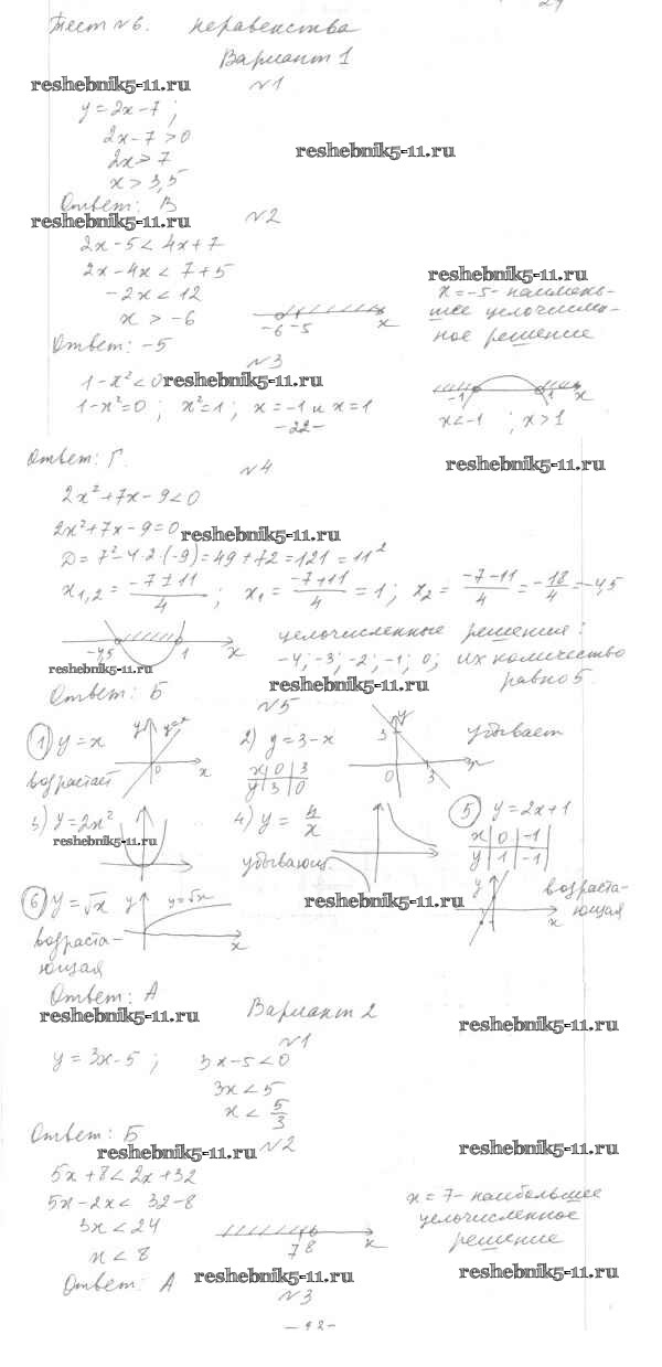 Готовая домашняя работа с ответами по Алгебре за 7, 8, 9 класс Мордкович, Тульчинкая Тесты Базовый уровень Мнемозина 2013 ФГОС - 8 класс Тест 6