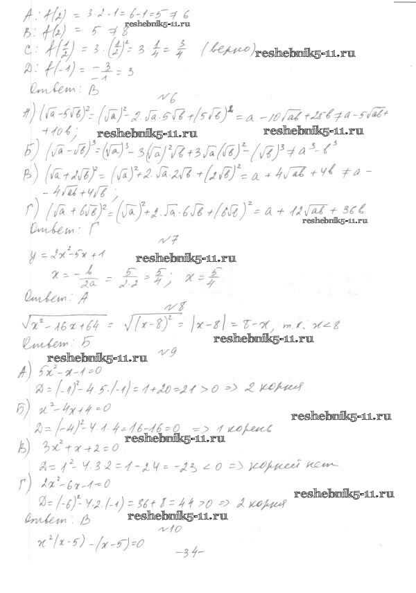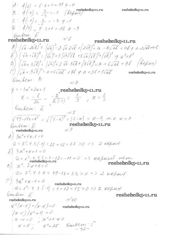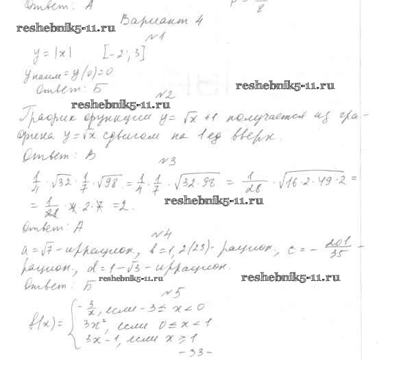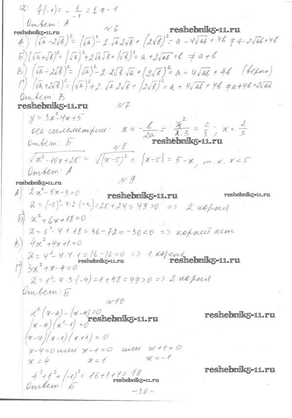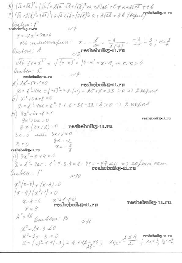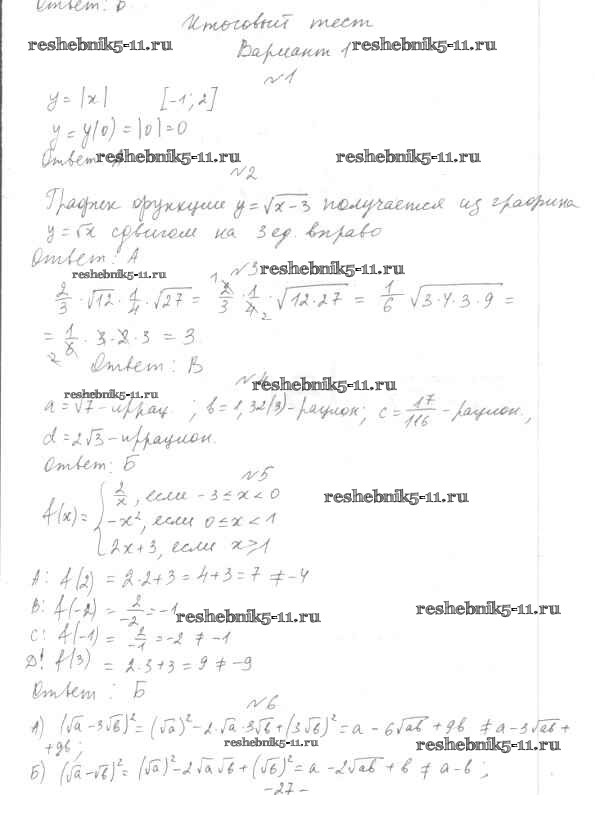 Готовая домашняя работа с ответами по Алгебре за 7, 8, 9 класс Мордкович, Тульчинкая Тесты Базовый уровень Мнемозина 2013 ФГОС - 8 класс Итоговый тест