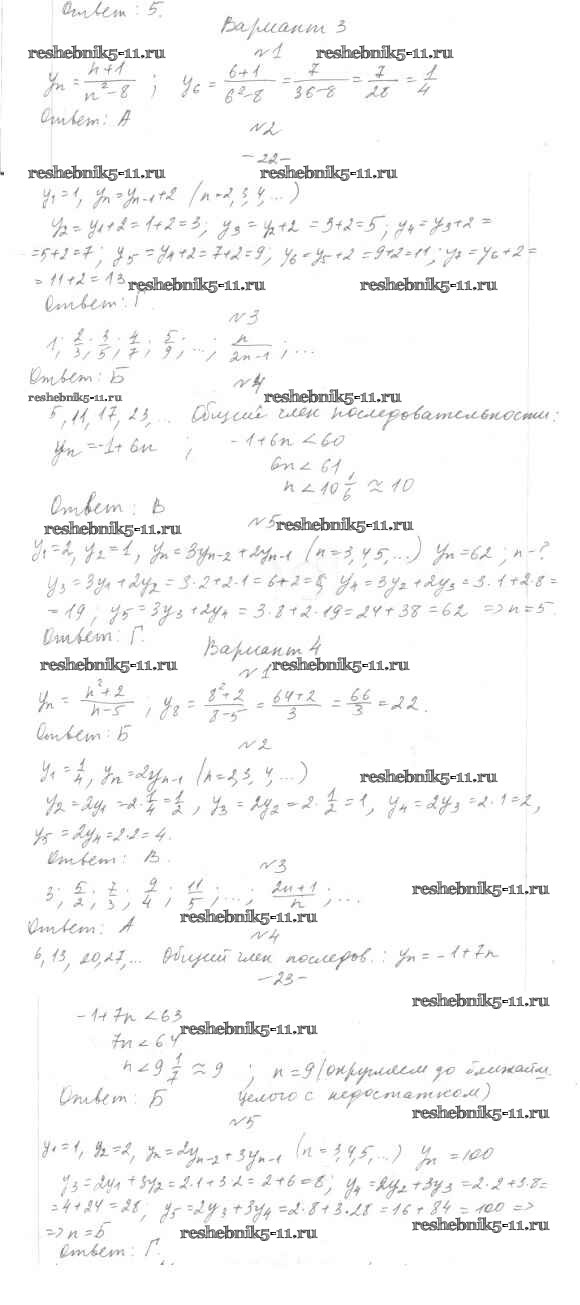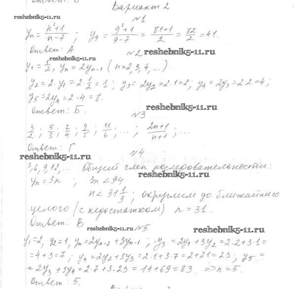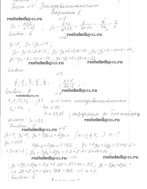 Готовая домашняя работа с ответами по Алгебре за 7, 8, 9 класс Мордкович, Тульчинкая Тесты Базовый уровень Мнемозина 2013 ФГОС - 9 класс Тест 5
