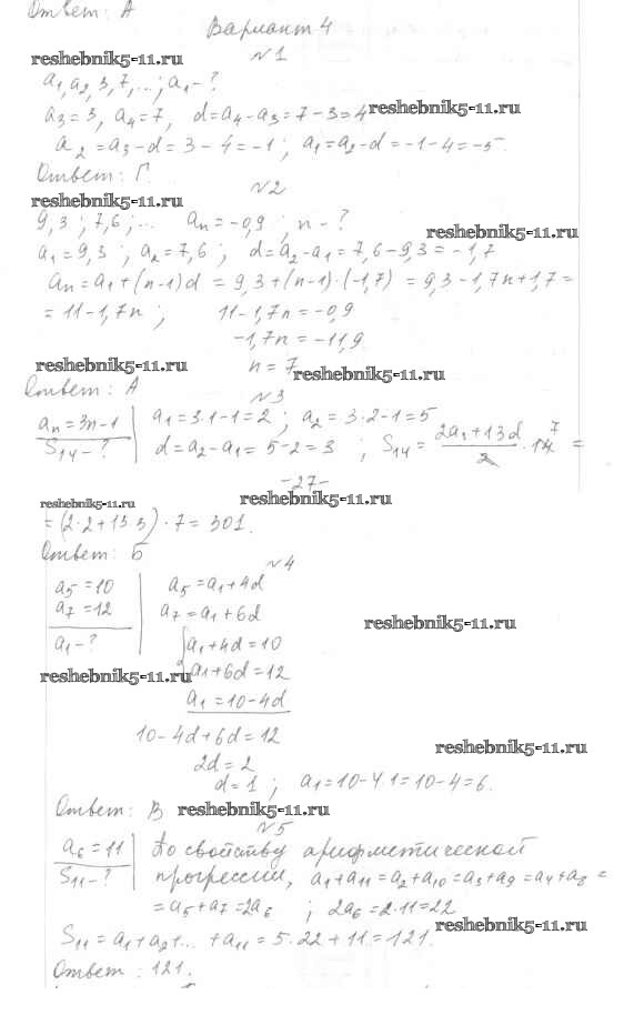 Готовая домашняя работа с ответами по Алгебре за 7, 8, 9 класс Мордкович, Тульчинкая Тесты Базовый уровень Мнемозина 2013 ФГОС - 9 класс Тест 6