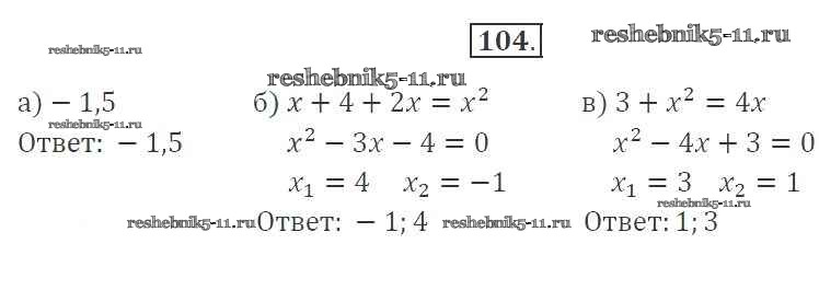 Готовая домашняя работа с ответами по Алгебре за 9 класс Минаева, Рослова Рабочая тетрадь Часть 1, 2 Просвещение 2017 - Упражнения 104