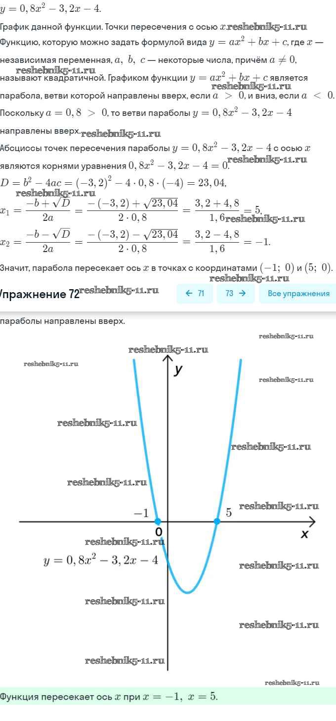 Готовая домашняя работа с ответами по Алгебре за 9 класс Минаева, Рослова Рабочая тетрадь Часть 1, 2 Просвещение 2017 - Упражнения 72