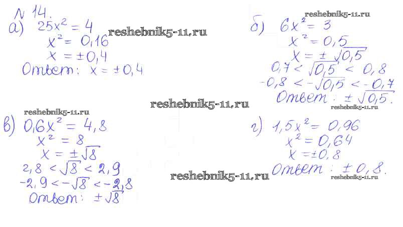 Готовая домашняя работа с ответами по Алгебре за 9 класс Дорофеев, Суворова, Бунимович, Кузнецова, Минаева, Рослова Учебник Просвещение 2016 ФГОС - Упражнения 14