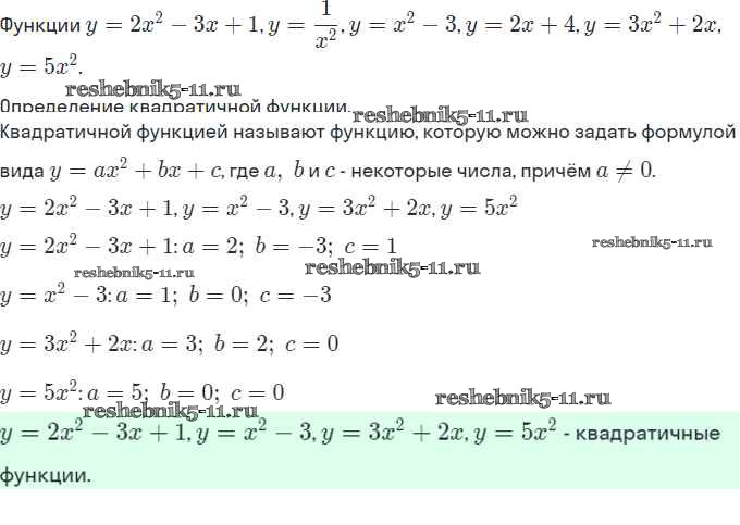 Готовая домашняя работа с ответами по Алгебре за 9 класс Дорофеев, Суворова, Бунимович, Кузнецова, Минаева, Рослова Учебник Просвещение 2016 ФГОС - Глава 2 1