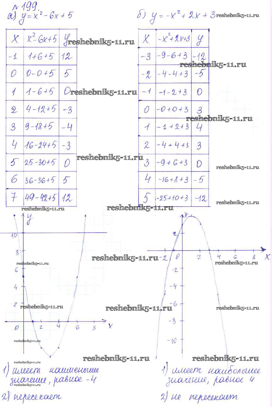 Готовая домашняя работа с ответами по Алгебре за 9 класс Дорофеев, Суворова, Бунимович, Кузнецова, Минаева, Рослова Учебник Просвещение 2016 ФГОС - Упражнения 199
