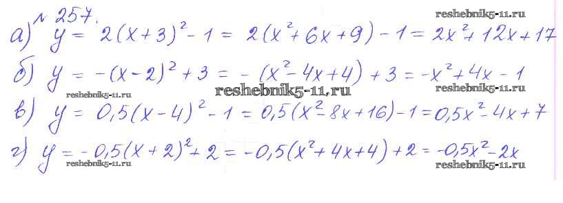 Готовая домашняя работа с ответами по Алгебре за 9 класс Дорофеев, Суворова, Бунимович, Кузнецова, Минаева, Рослова Учебник Просвещение 2016 ФГОС - Упражнения 257