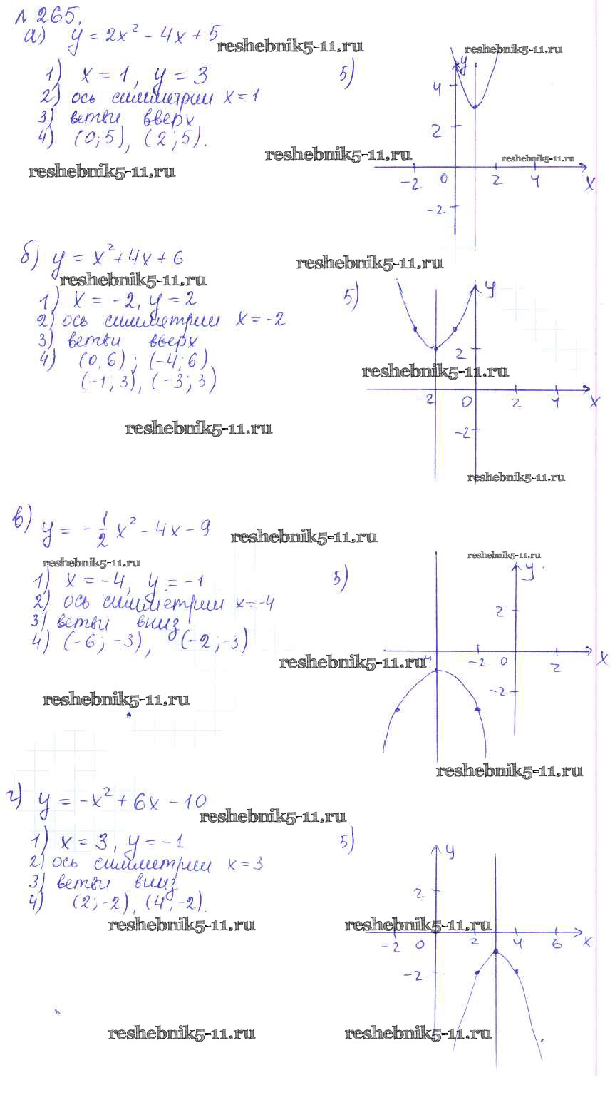 Готовая домашняя работа с ответами по Алгебре за 9 класс Дорофеев, Суворова, Бунимович, Кузнецова, Минаева, Рослова Учебник Просвещение 2016 ФГОС - Упражнения 265