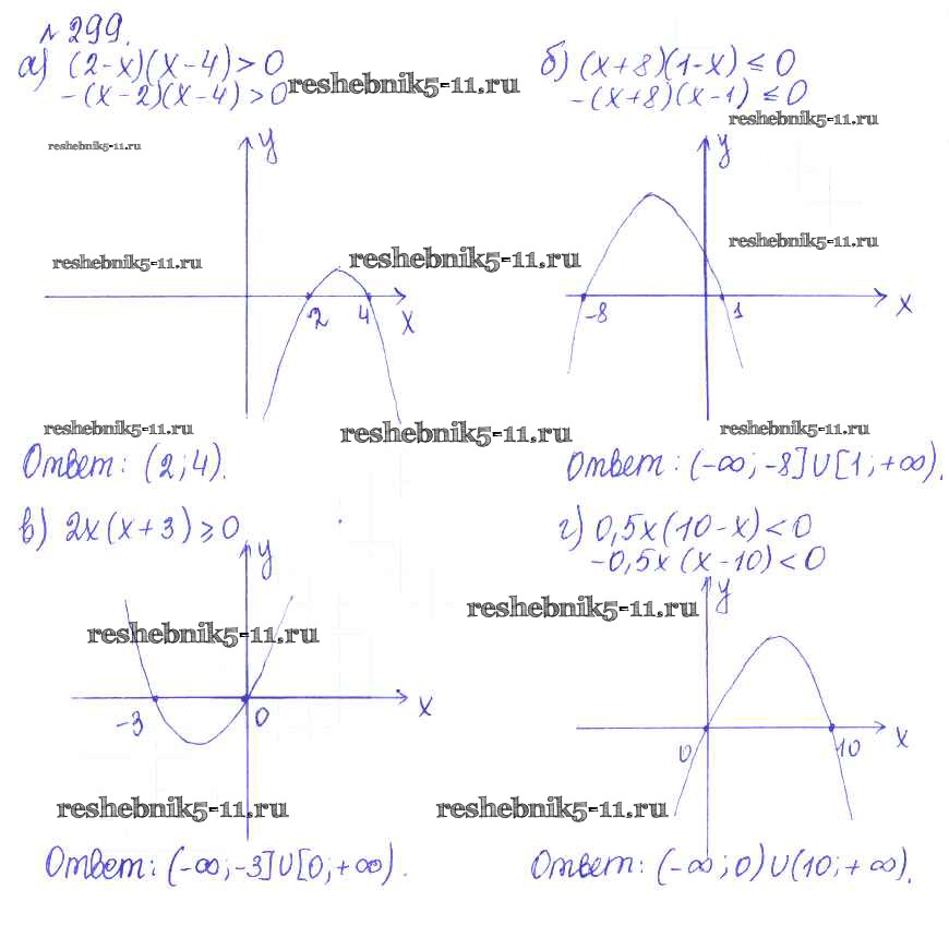 Готовая домашняя работа с ответами по Алгебре за 9 класс Дорофеев, Суворова, Бунимович, Кузнецова, Минаева, Рослова Учебник Просвещение 2016 ФГОС - Упражнения 299