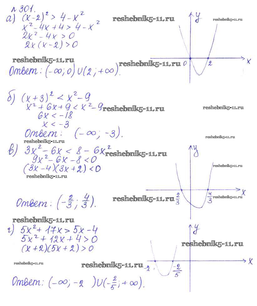 Готовая домашняя работа с ответами по Алгебре за 9 класс Дорофеев, Суворова, Бунимович, Кузнецова, Минаева, Рослова Учебник Просвещение 2016 ФГОС - Упражнения 301