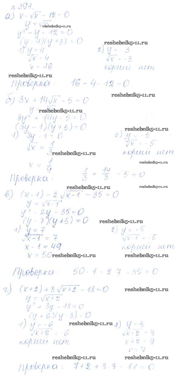 Готовая домашняя работа с ответами по Алгебре за 9 класс Дорофеев, Суворова, Бунимович, Кузнецова, Минаева, Рослова Учебник Просвещение 2016 ФГОС - Упражнения 391