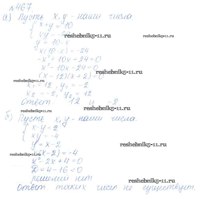 Готовая домашняя работа с ответами по Алгебре за 9 класс Дорофеев, Суворова, Бунимович, Кузнецова, Минаева, Рослова Учебник Просвещение 2016 ФГОС - Упражнения 467