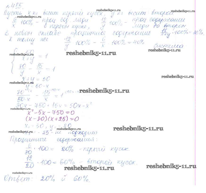 Готовая домашняя работа с ответами по Алгебре за 9 класс Дорофеев, Суворова, Бунимович, Кузнецова, Минаева, Рослова Учебник Просвещение 2016 ФГОС - Упражнения 485