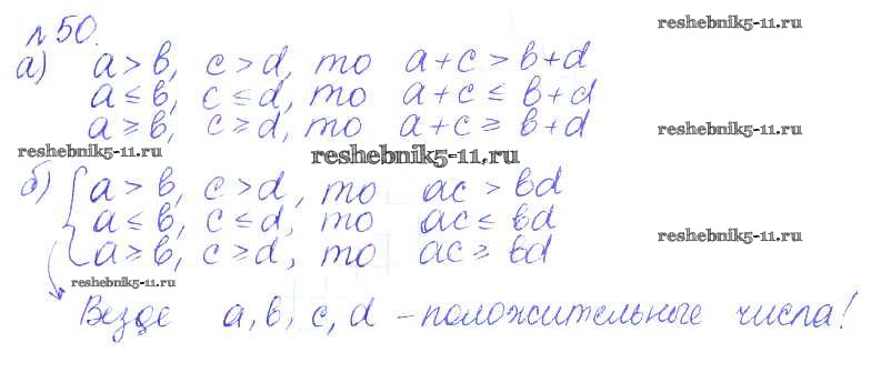 Готовая домашняя работа с ответами по Алгебре за 9 класс Дорофеев, Суворова, Бунимович, Кузнецова, Минаева, Рослова Учебник Просвещение 2016 ФГОС - Упражнения 50