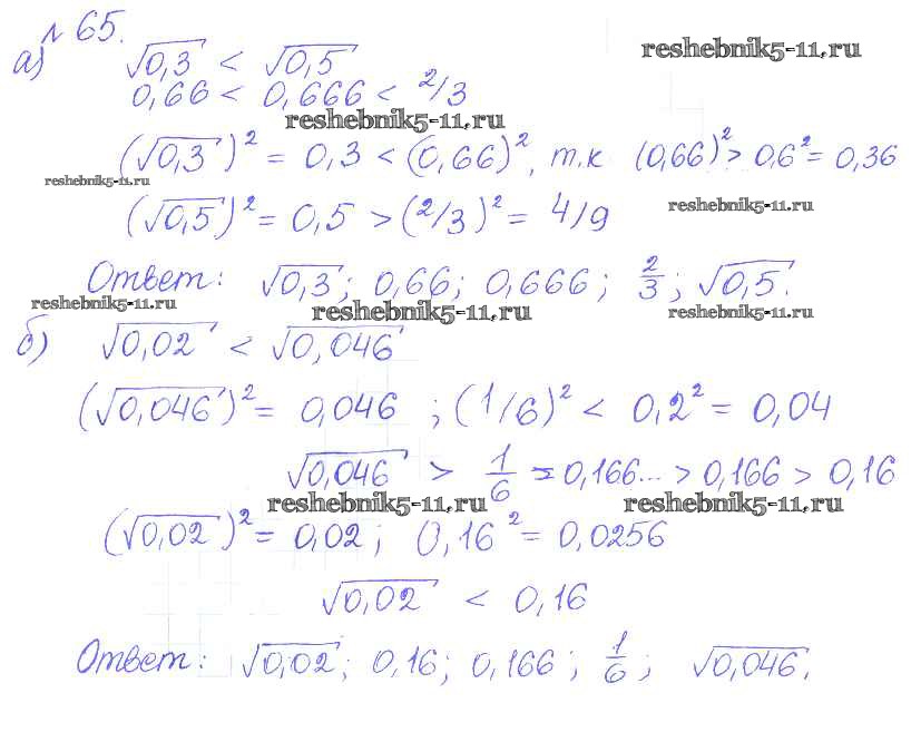 Готовая домашняя работа с ответами по Алгебре за 9 класс Дорофеев, Суворова, Бунимович, Кузнецова, Минаева, Рослова Учебник Просвещение 2016 ФГОС - Упражнения 65