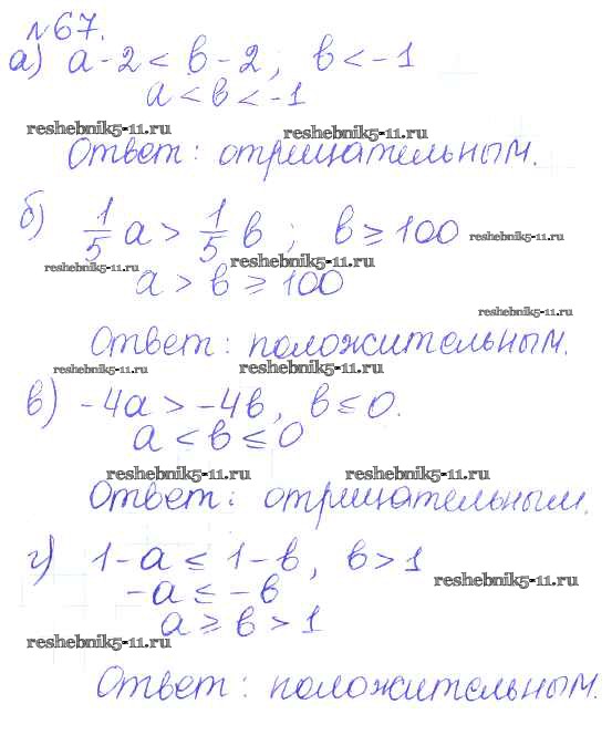 Готовая домашняя работа с ответами по Алгебре за 9 класс Дорофеев, Суворова, Бунимович, Кузнецова, Минаева, Рослова Учебник Просвещение 2016 ФГОС - Упражнения 67