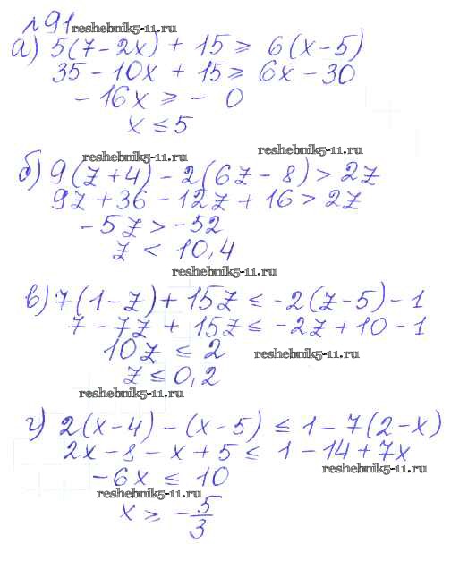 Готовая домашняя работа с ответами по Алгебре за 9 класс Дорофеев, Суворова, Бунимович, Кузнецова, Минаева, Рослова Учебник Просвещение 2016 ФГОС - Упражнения 91