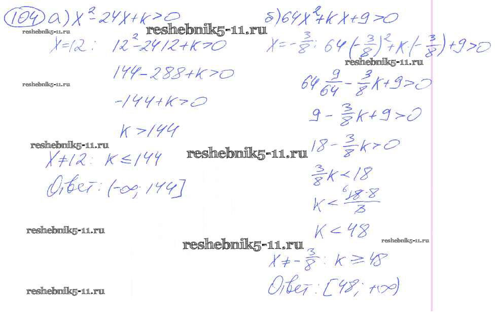 Готовая домашняя работа с ответами по Алгебре за 9 класс Никольский, Потапов, Решетников, Шевкин Учебник МГУ - школе Просвещение 2014 ФГОС - Упражнения 104