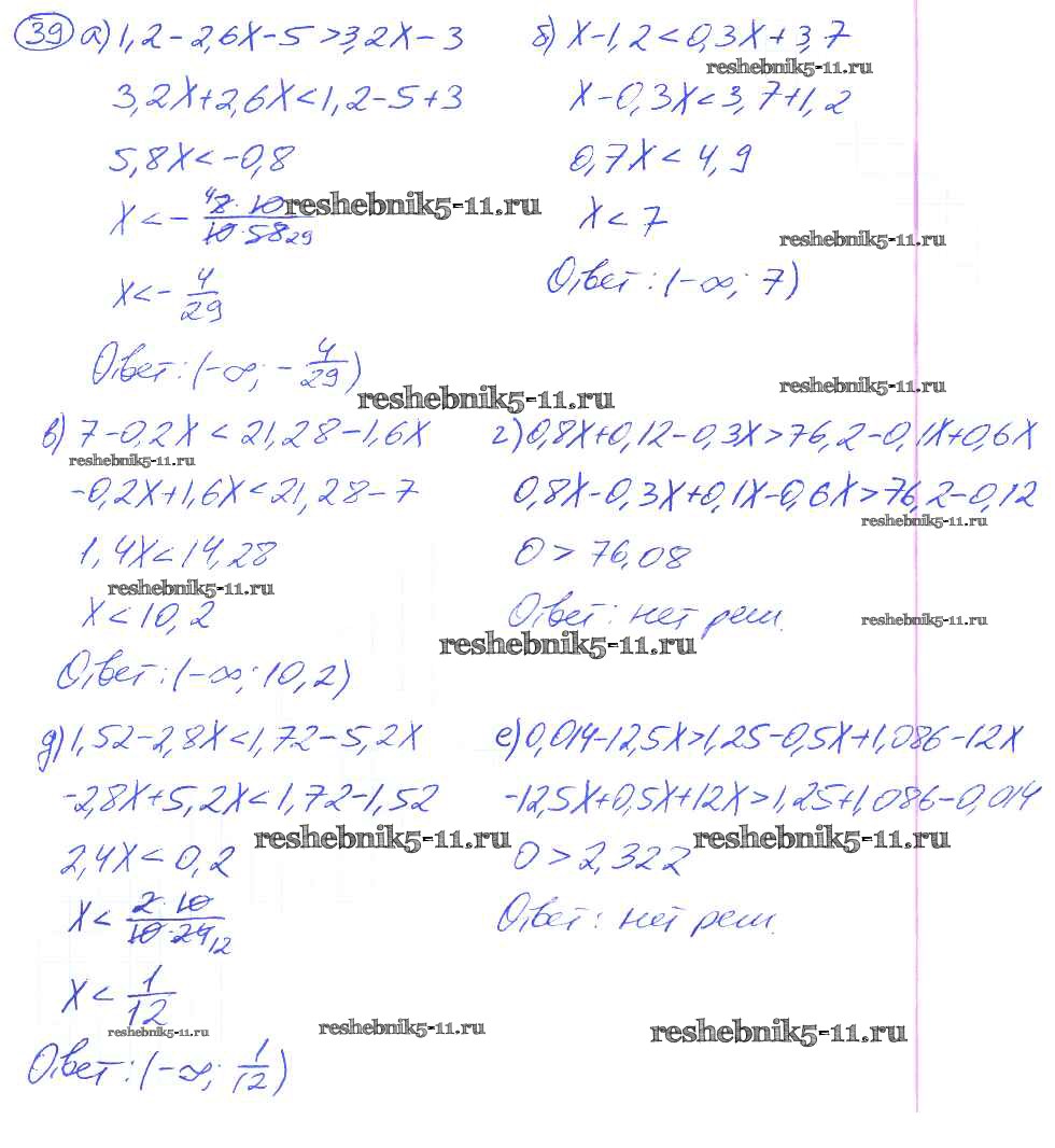 Готовая домашняя работа с ответами по Алгебре за 9 класс Никольский, Потапов, Решетников, Шевкин Учебник МГУ - школе Просвещение 2014 ФГОС - Упражнения 39