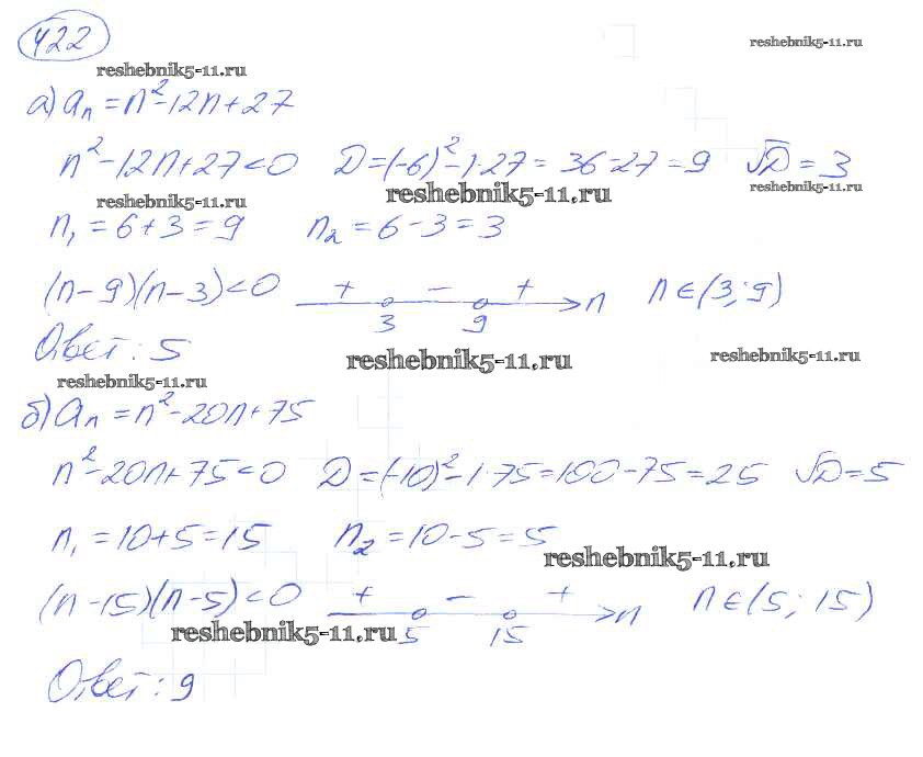Готовая домашняя работа с ответами по Алгебре за 9 класс Никольский, Потапов, Решетников, Шевкин Учебник МГУ - школе Просвещение 2014 ФГОС - Упражнения 422