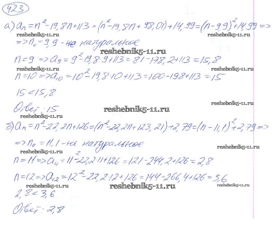 Готовая домашняя работа с ответами по Алгебре за 9 класс Никольский, Потапов, Решетников, Шевкин Учебник МГУ - школе Просвещение 2014 ФГОС - Упражнения 423