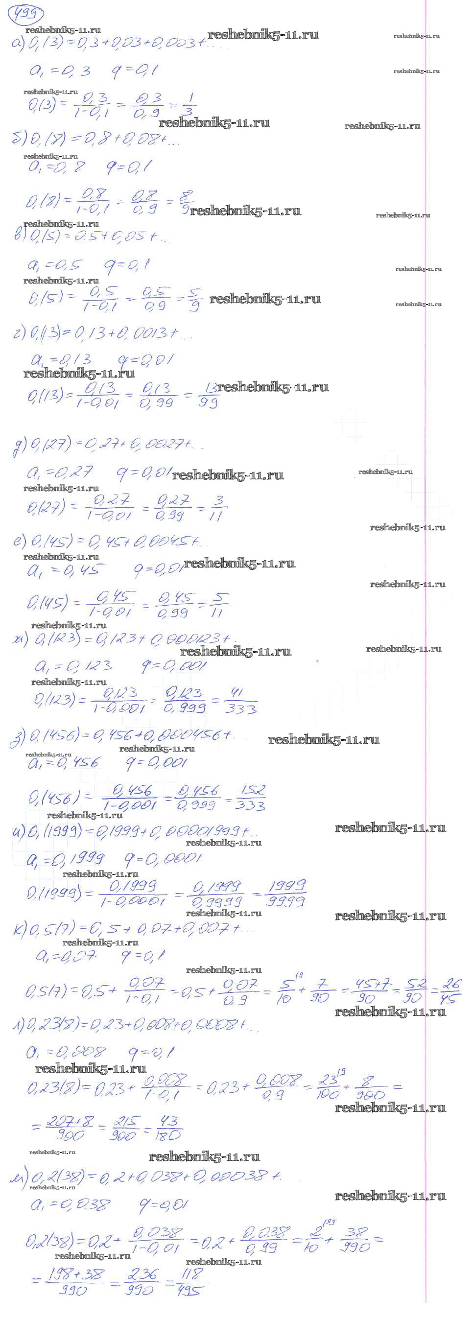 Готовая домашняя работа с ответами по Алгебре за 9 класс Никольский, Потапов, Решетников, Шевкин Учебник МГУ - школе Просвещение 2014 ФГОС - Упражнения 499
