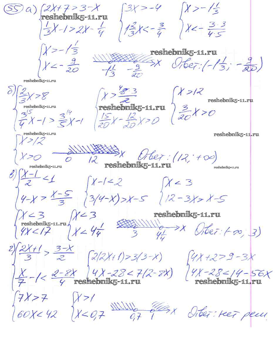 Готовая домашняя работа с ответами по Алгебре за 9 класс Никольский, Потапов, Решетников, Шевкин Учебник МГУ - школе Просвещение 2014 ФГОС - Упражнения 55