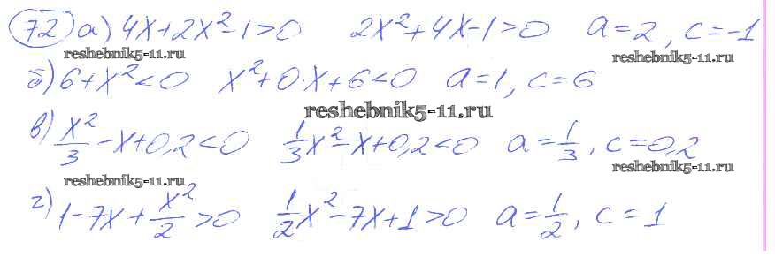 Готовая домашняя работа с ответами по Алгебре за 9 класс Никольский, Потапов, Решетников, Шевкин Учебник МГУ - школе Просвещение 2014 ФГОС - Упражнения 72