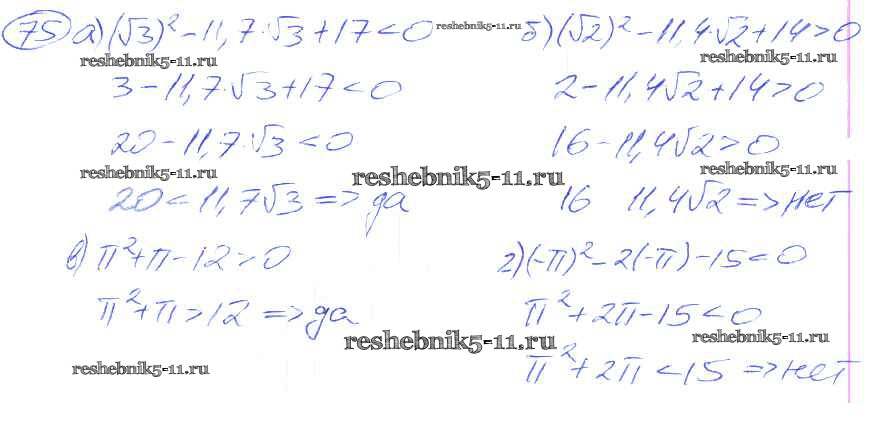 Готовая домашняя работа с ответами по Алгебре за 9 класс Никольский, Потапов, Решетников, Шевкин Учебник МГУ - школе Просвещение 2014 ФГОС - Упражнения 75