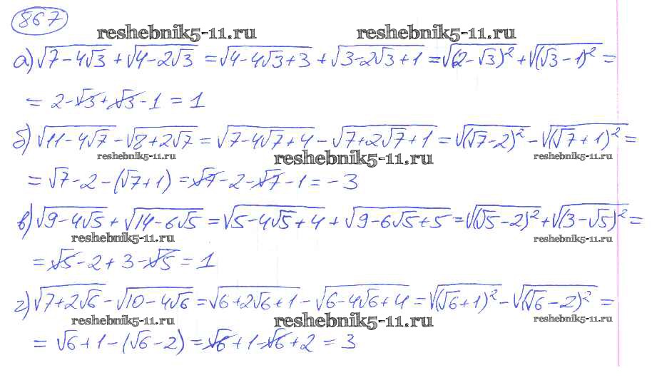 Готовая домашняя работа с ответами по Алгебре за 9 класс Никольский, Потапов, Решетников, Шевкин Учебник МГУ - школе Просвещение 2014 ФГОС - Упражнения 867