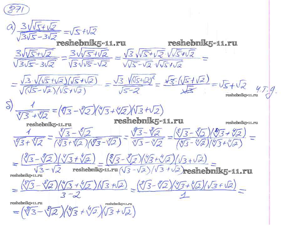 Готовая домашняя работа с ответами по Алгебре за 9 класс Никольский, Потапов, Решетников, Шевкин Учебник МГУ - школе Просвещение 2014 ФГОС - Упражнения 871