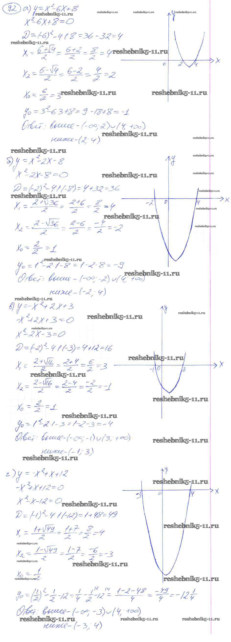Готовая домашняя работа с ответами по Алгебре за 9 класс Никольский, Потапов, Решетников, Шевкин Учебник МГУ - школе Просвещение 2014 ФГОС - Упражнения 92