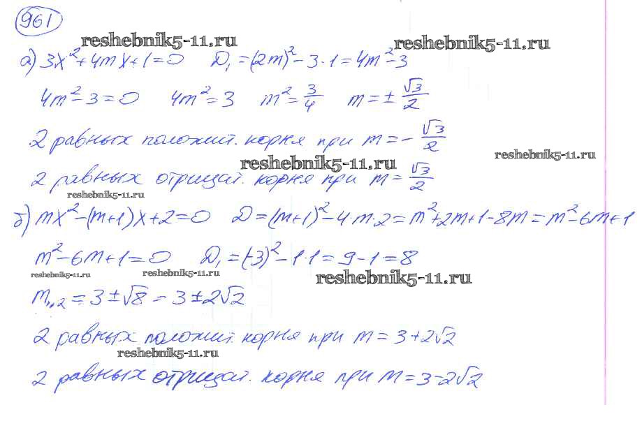 Готовая домашняя работа с ответами по Алгебре за 9 класс Никольский, Потапов, Решетников, Шевкин Учебник МГУ - школе Просвещение 2014 ФГОС - Упражнения 961
