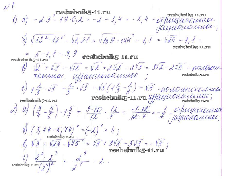 Готовая домашняя работа с ответами по Алгебре за 9 класс Евстафьева, Карп Дидактические материалы Просвещение 2017 ФГОС - О-1. Действительные числа 1
