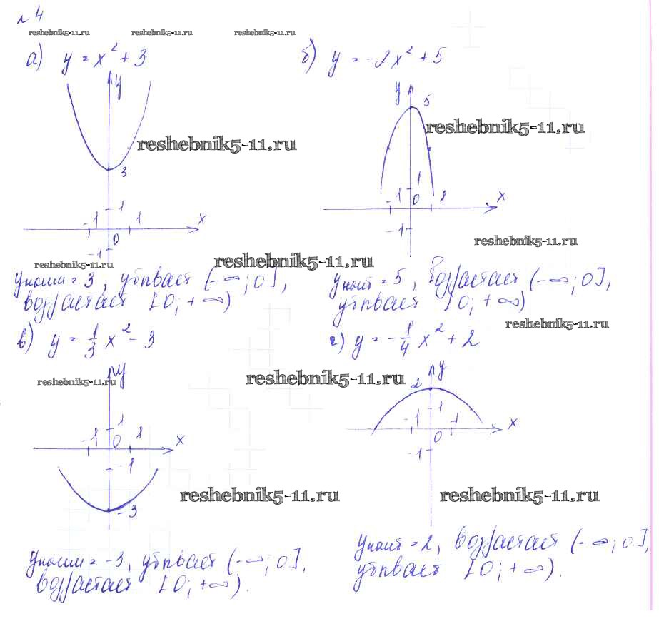 Готовая домашняя работа с ответами по Алгебре за 9 класс Евстафьева, Карп Дидактические материалы Просвещение 2017 ФГОС - О-10. Сдвиг графика функции y = ax2 вдоль оси у 4