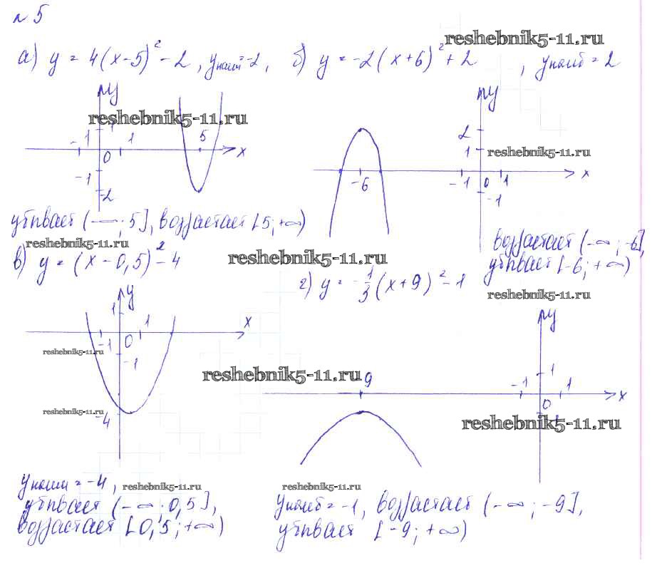 Готовая домашняя работа с ответами по Алгебре за 9 класс Евстафьева, Карп Дидактические материалы Просвещение 2017 ФГОС - О-12. Сдвиг графика функции y = ax2 вдоль осей координат 5