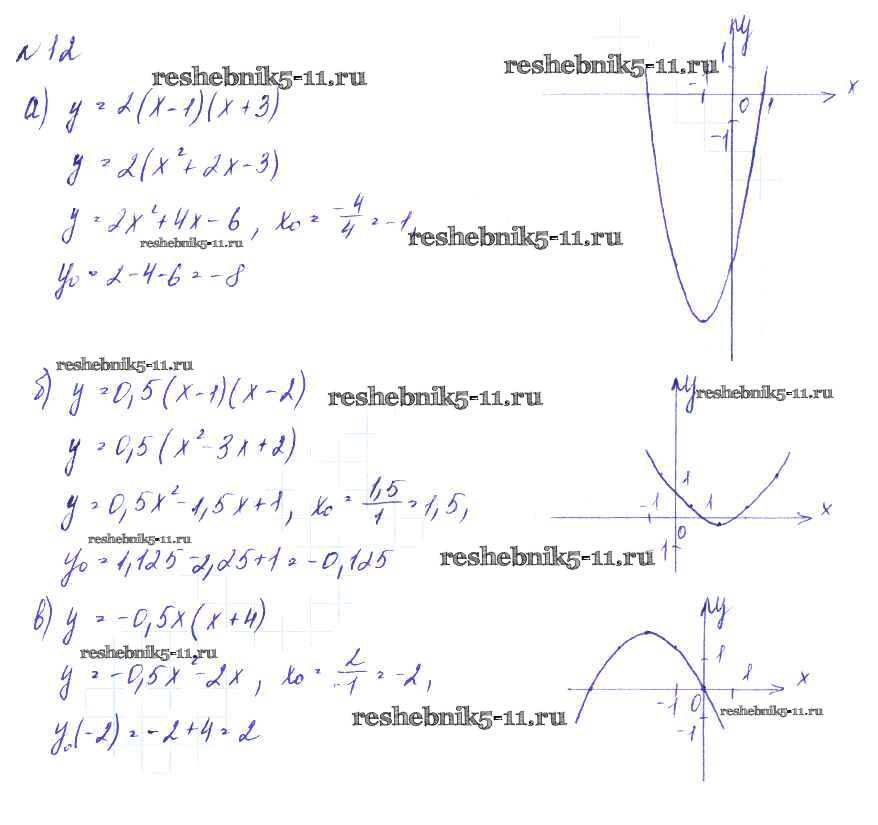 Готовая домашняя работа с ответами по Алгебре за 9 класс Евстафьева, Карп Дидактические материалы Просвещение 2017 ФГОС - О-13. График функции y = ax2 + bx + c 12