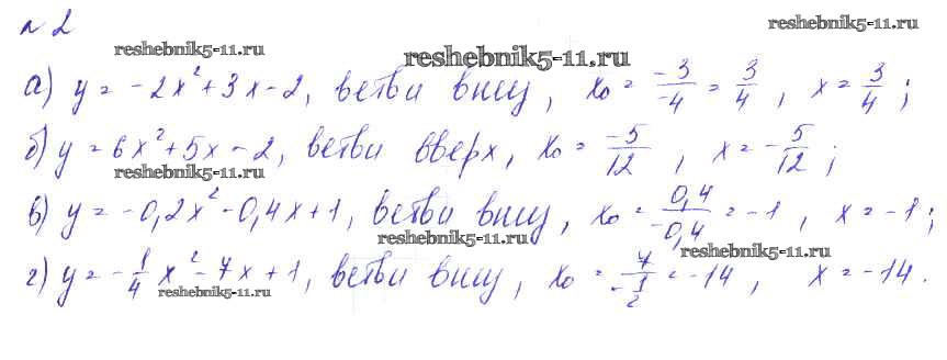 Готовая домашняя работа с ответами по Алгебре за 9 класс Евстафьева, Карп Дидактические материалы Просвещение 2017 ФГОС - О-13. График функции y = ax2 + bx + c 2