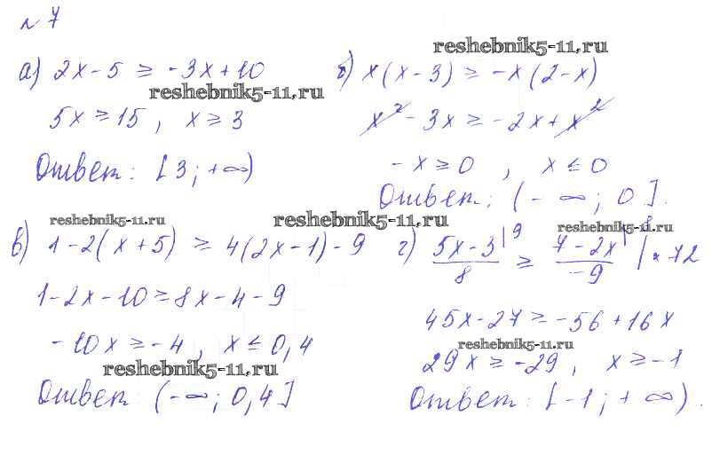 Готовая домашняя работа с ответами по Алгебре за 9 класс Евстафьева, Карп Дидактические материалы Просвещение 2017 ФГОС - О-3. Решение неравенств 7