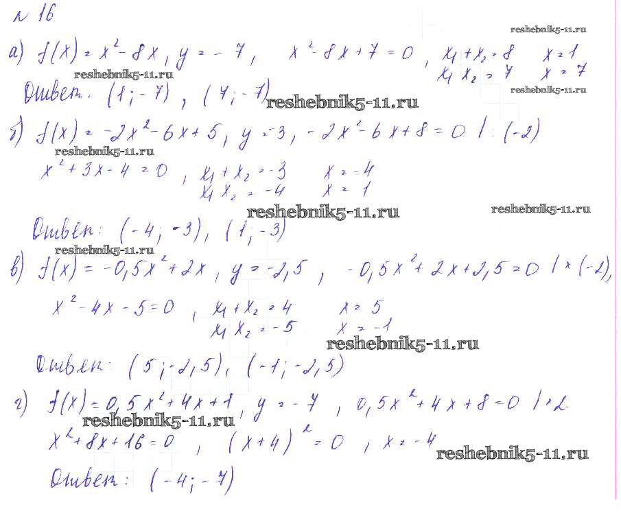 Готовая домашняя работа с ответами по Алгебре за 9 класс Евстафьева, Карп Дидактические материалы Просвещение 2017 ФГОС - О-8. Какую функцию называют квадратичной 16