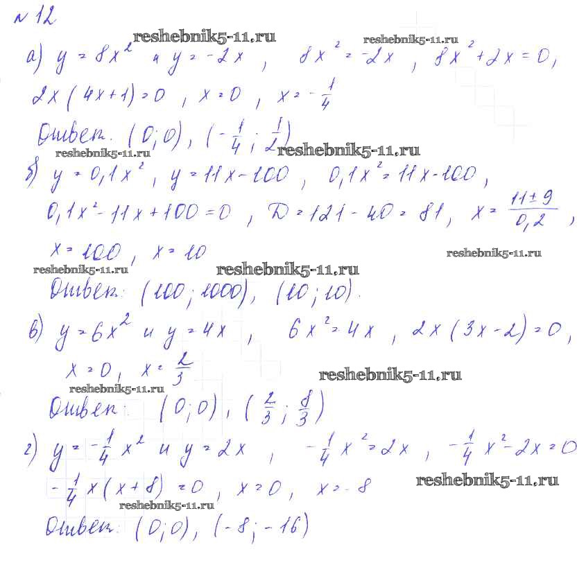 Готовая домашняя работа с ответами по Алгебре за 9 класс Евстафьева, Карп Дидактические материалы Просвещение 2017 ФГОС - О-9. График и свойства функции y = ax2 12