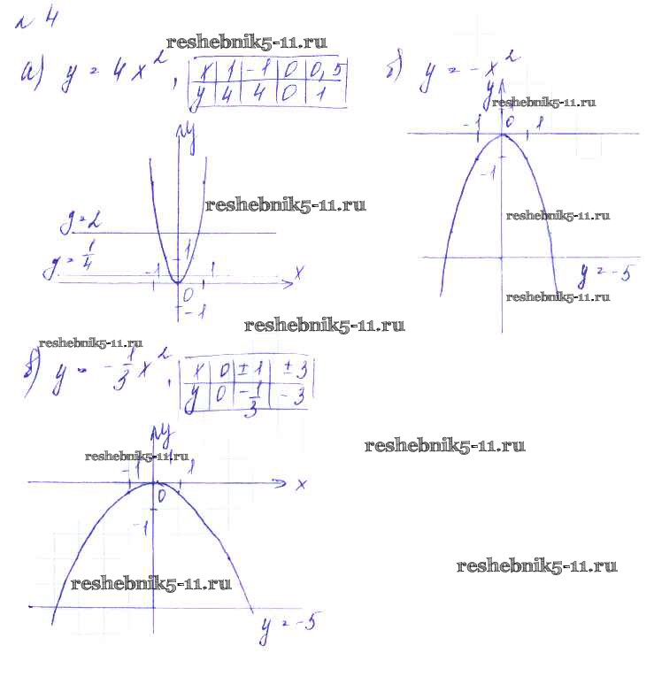 Готовая домашняя работа с ответами по Алгебре за 9 класс Евстафьева, Карп Дидактические материалы Просвещение 2017 ФГОС - О-9. График и свойства функции y = ax2 4