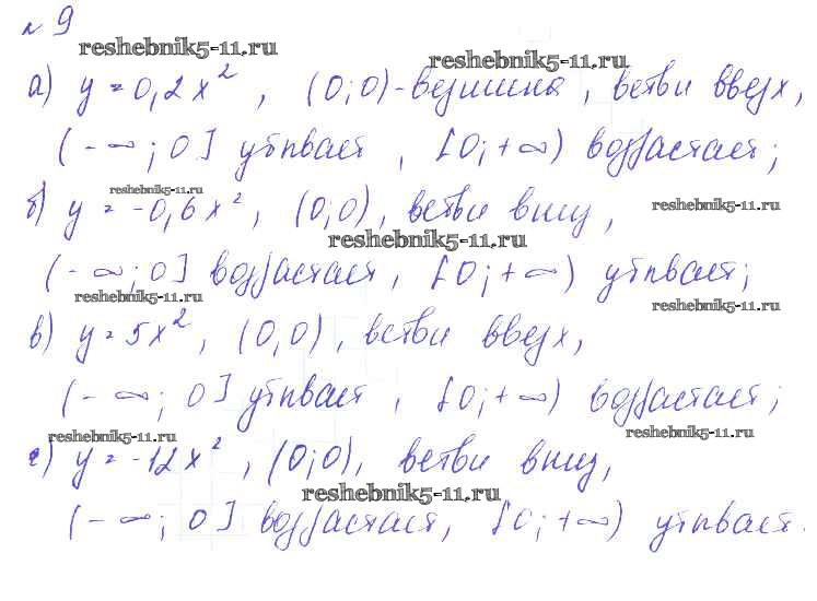 Готовая домашняя работа с ответами по Алгебре за 9 класс Евстафьева, Карп Дидактические материалы Просвещение 2017 ФГОС - О-9. График и свойства функции y = ax2 9